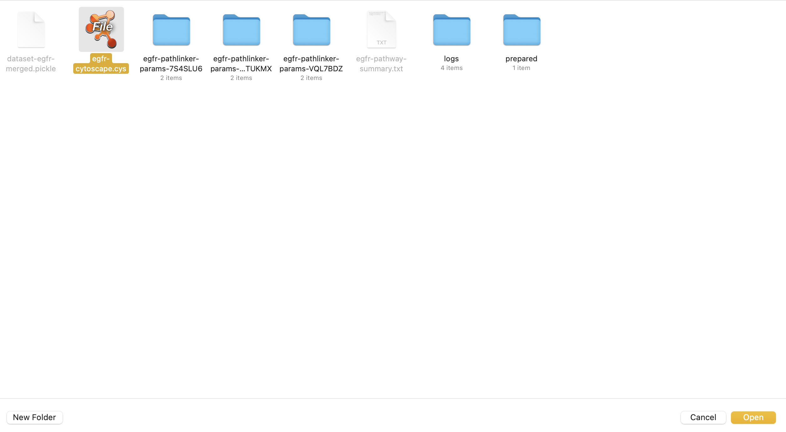 Navigate to output/beginner/egfr-cytoscape.cys and open it in Cytoscape.